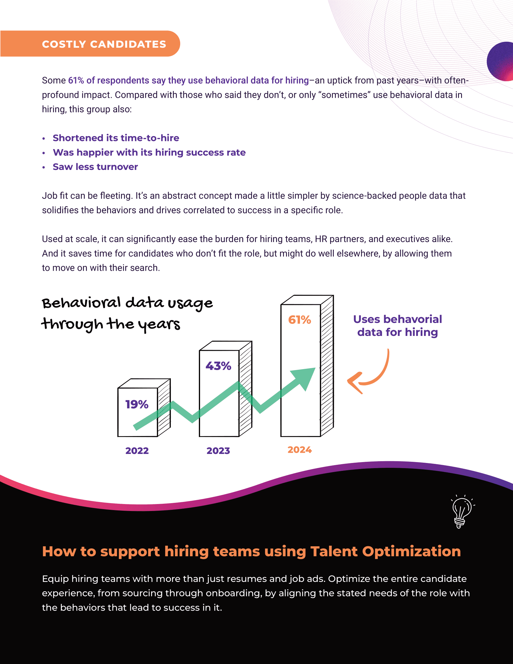 - Companies using behavioral data report better hiring success, faster time-to-hire, and stronger leadership outcomes.